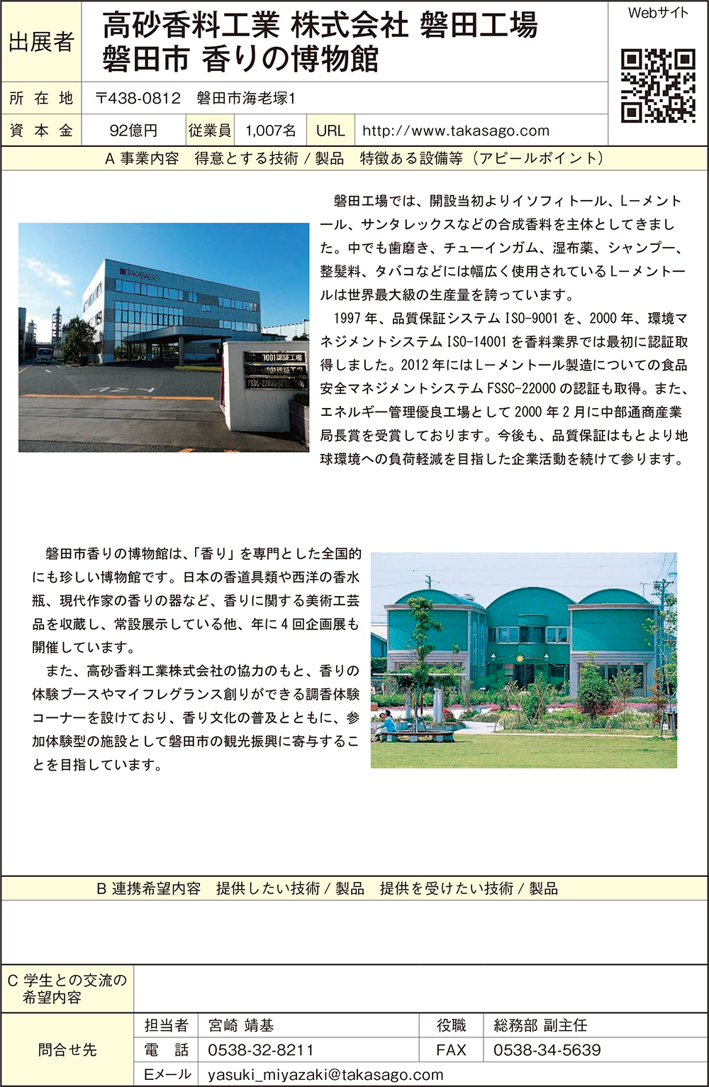 高砂香料工業(株)/磐田市香りの博物館